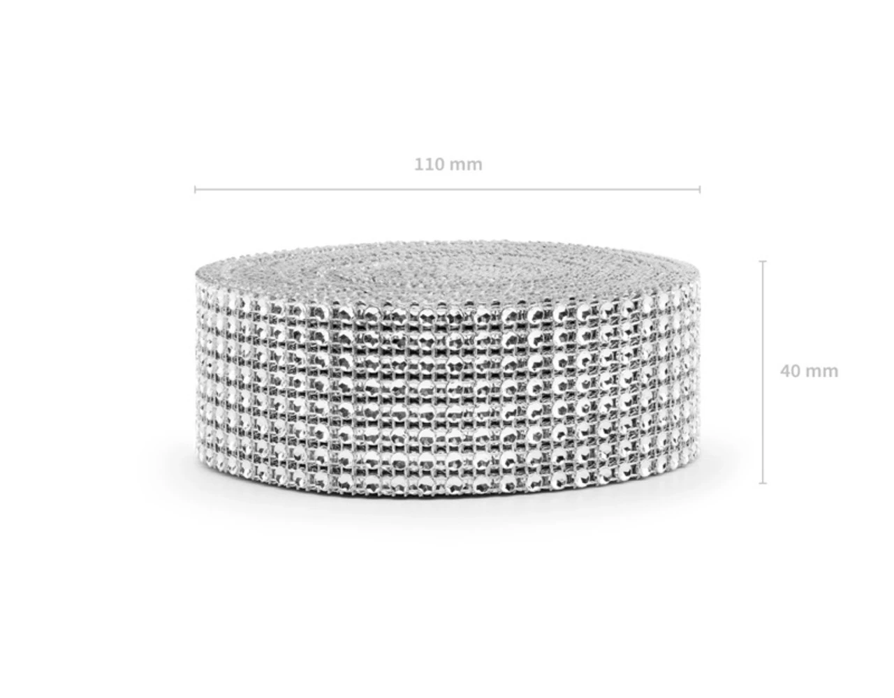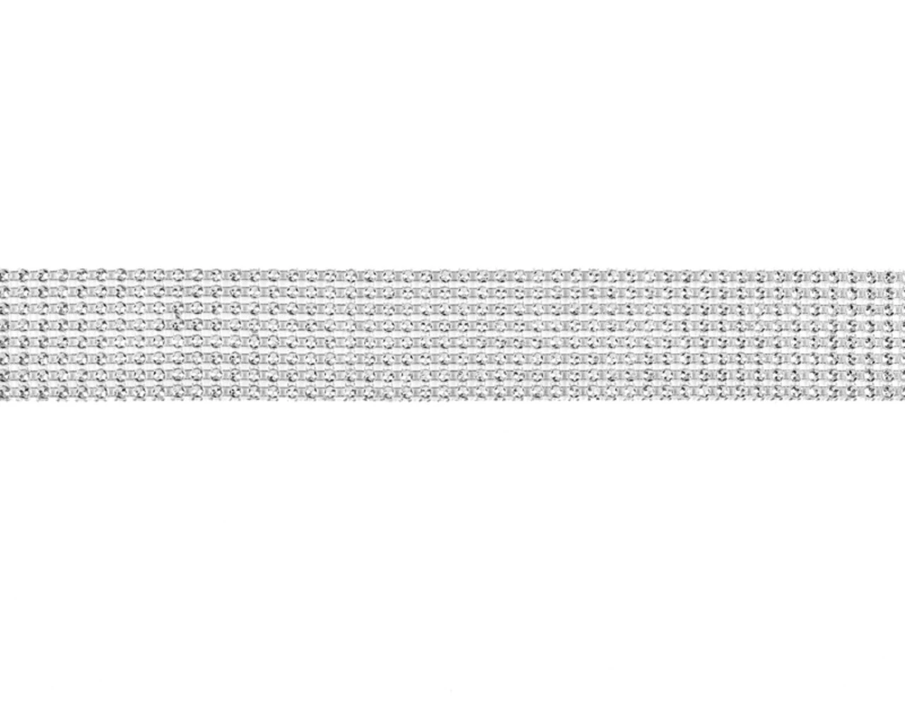 Strass band, zilver, breedte ca. 4 cm, lengte ca. 9 m.