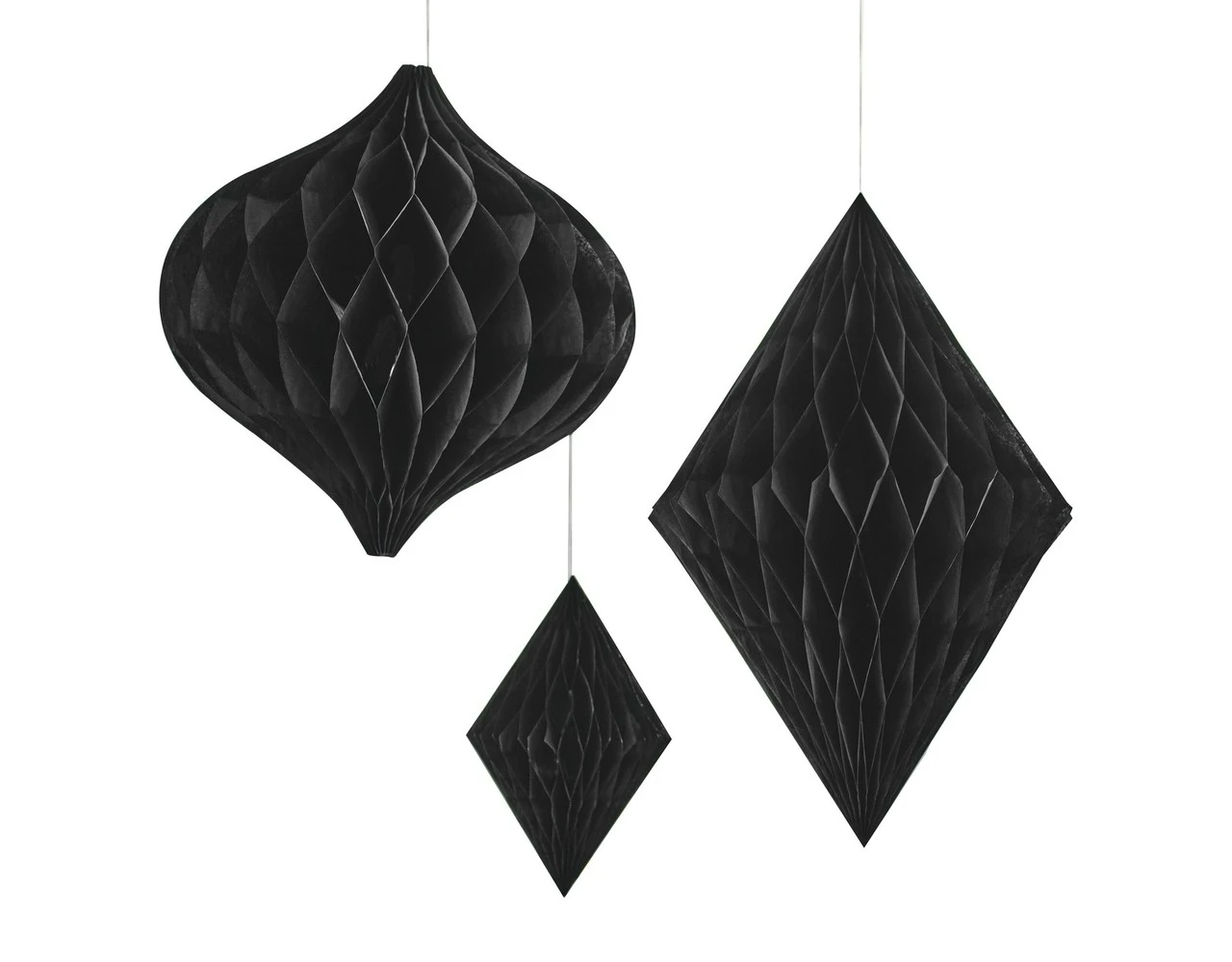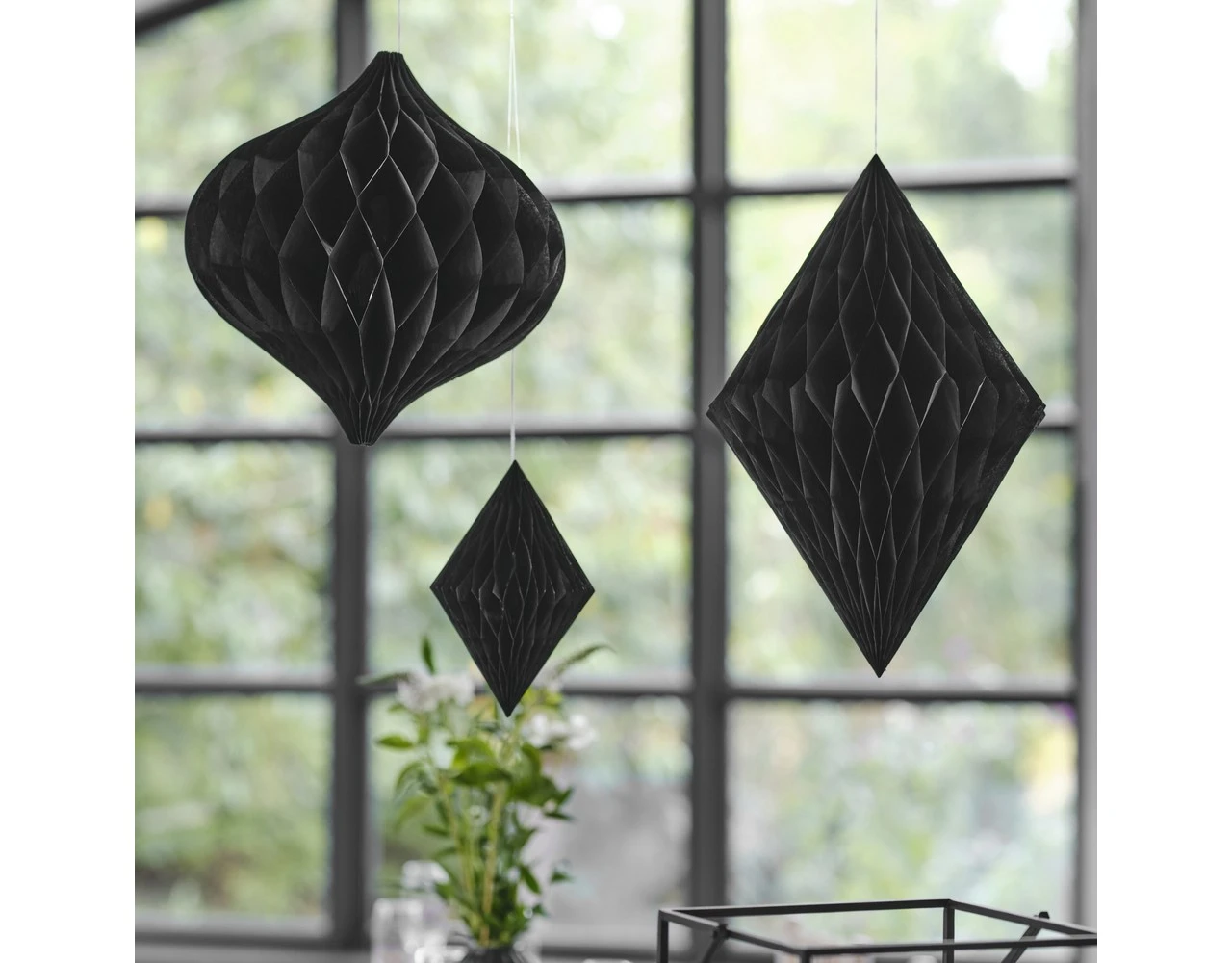 Decoreer in stijl met deze chique zwarte honingraat hangende decoraties.